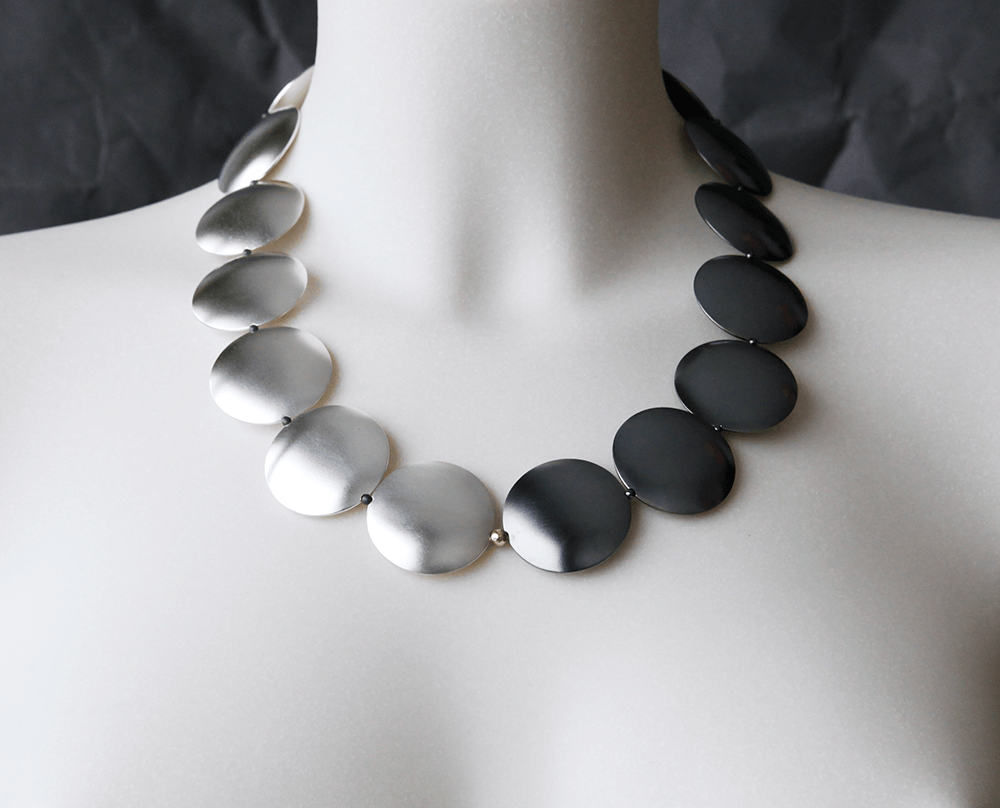 Halssmycke, silver, oxiderat silver, hematit, guld. Foto: Gunnar Stening