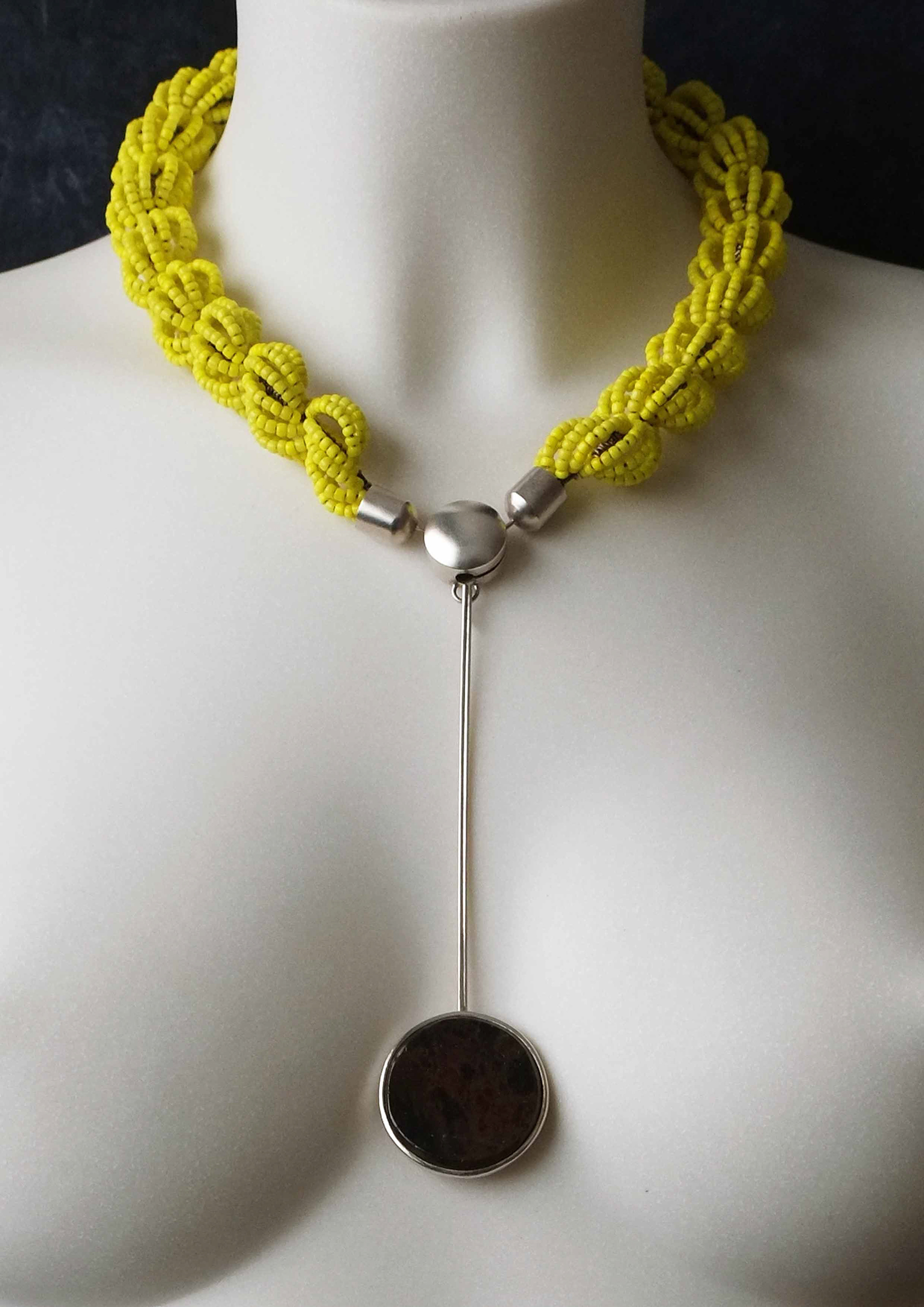 Halssmycke, glaspärlor, silver, obsidian. Foto: Gunnar Stening